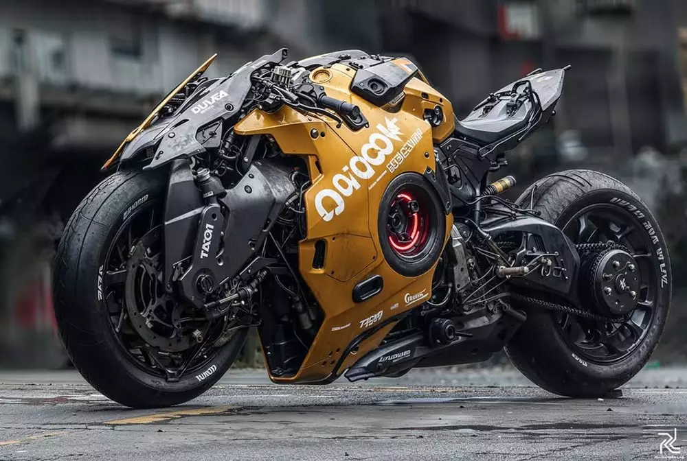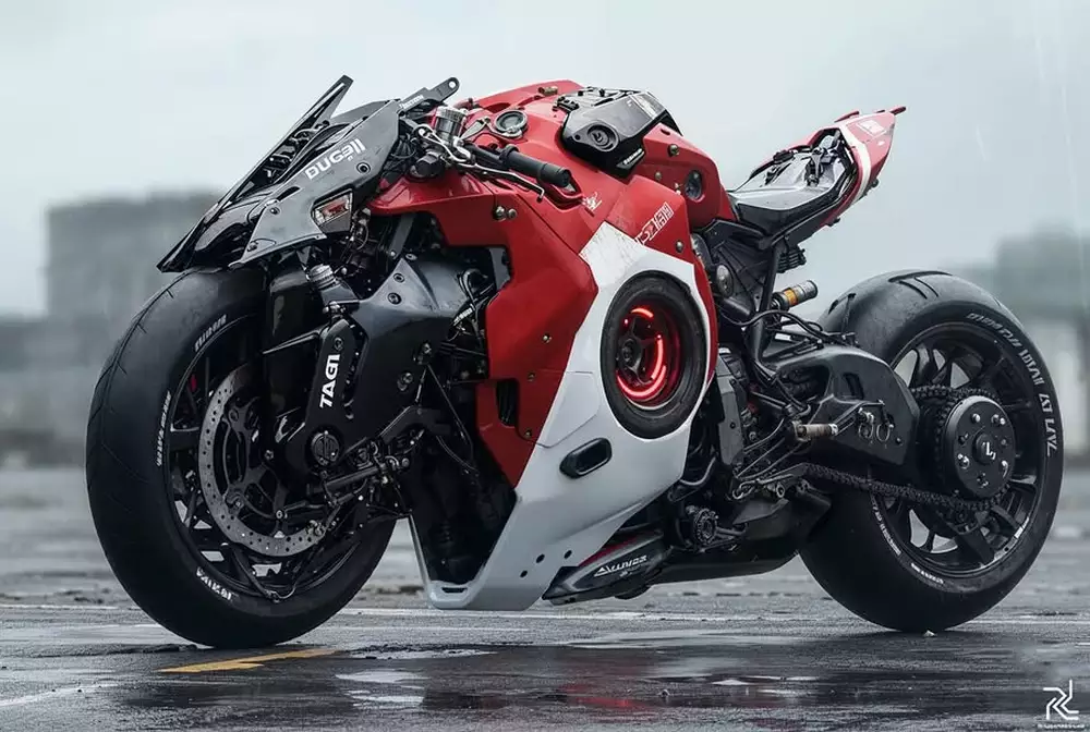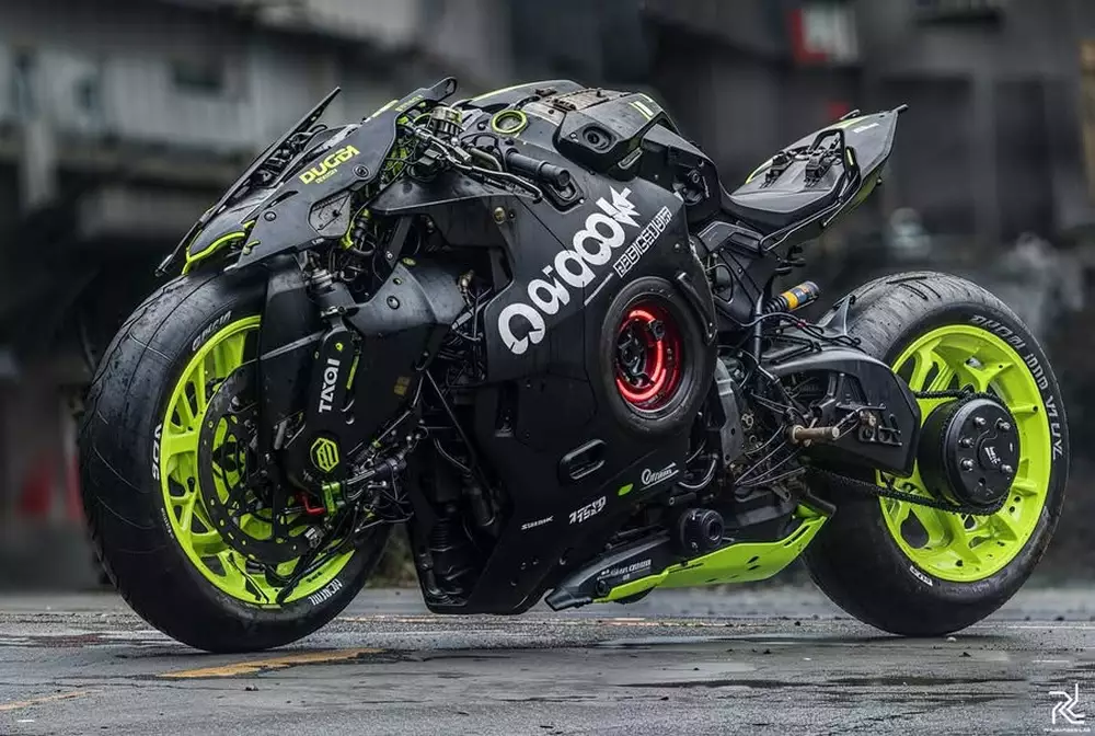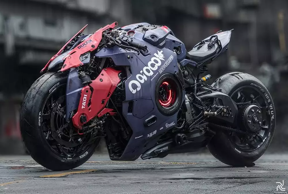 Each design blends MotoGP-inspired aerodynamics with cyberpunk aesthetics — combining raw racing power and sci-fi engineering in one perfect machine.
