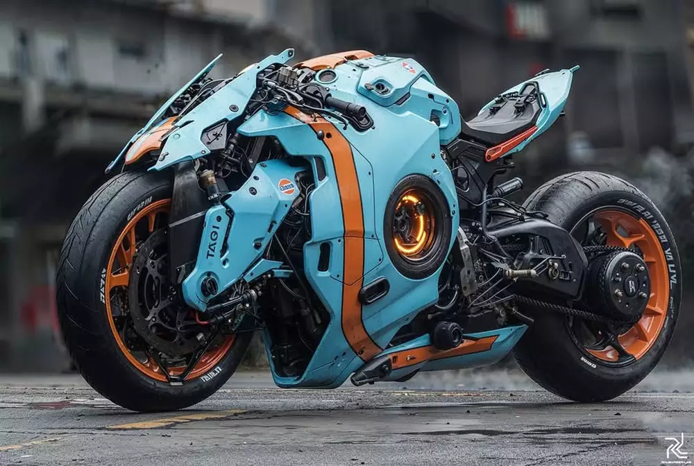 These stunning futuristic superbikes are part of a 9-version AI-generated concept series created by the digital artist Rhubarbes.