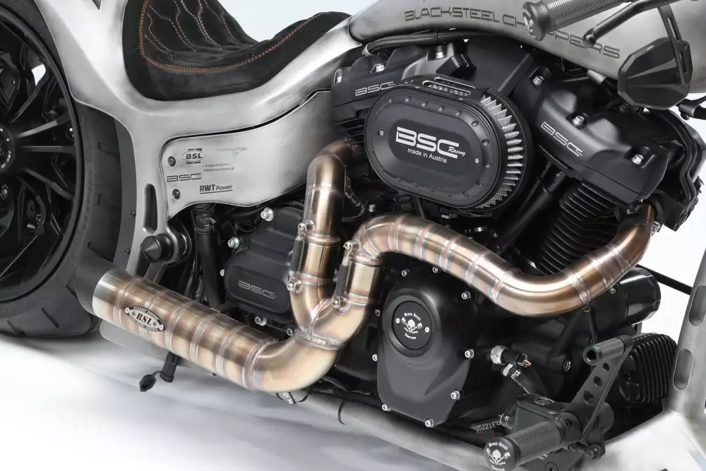 Black Steel Choppers of Austria has unveiled a striking dragster-style custom motorcycle that embodies both raw performance and artistic craftsmanship.
