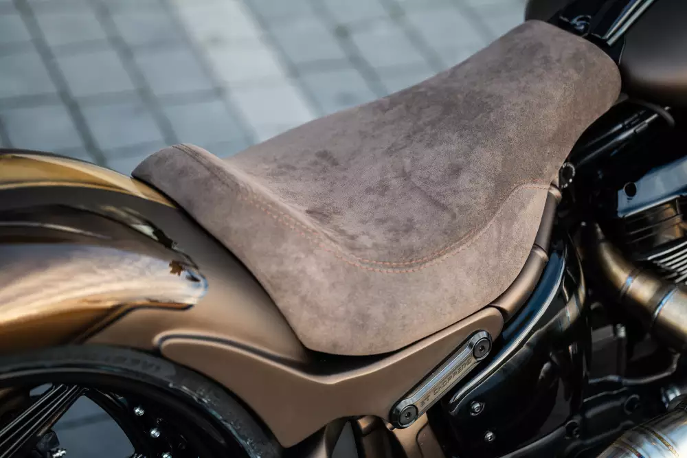 A suede-style seat keeps the profile sleek while adding a touch of comfort and luxury. Every component feels intentional: from the custom fenders to the engine detailing and the flawlessly integrated accents.