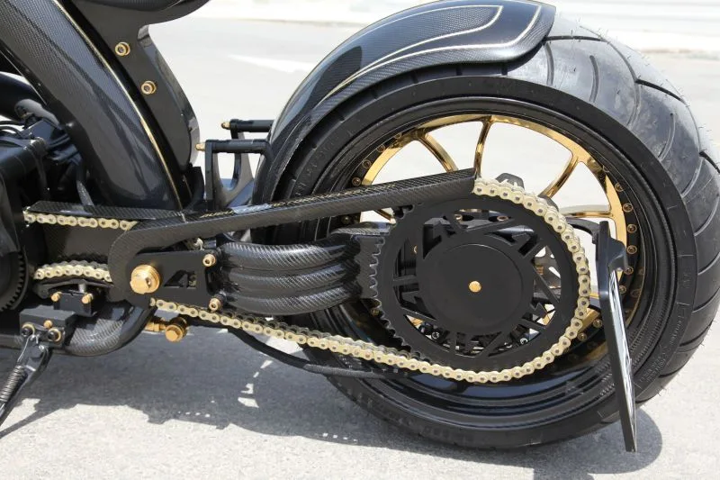 Swingarm: AFG single-sided swingarm, in-line adjustable