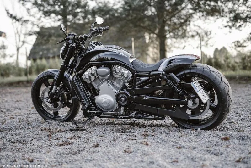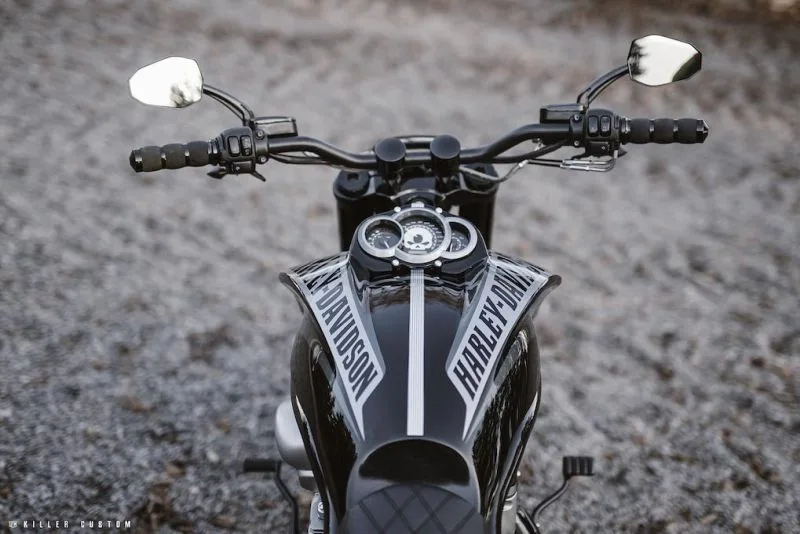 Most of the parts we use on our builds are manufactured by us, so shop this look below without spending tons of money to get the same aggressive look! Almost on all of our builds we use the same handlebar, grips, front fork covers, and lowering kits, as it always works to get that mean look of the V-Rod!