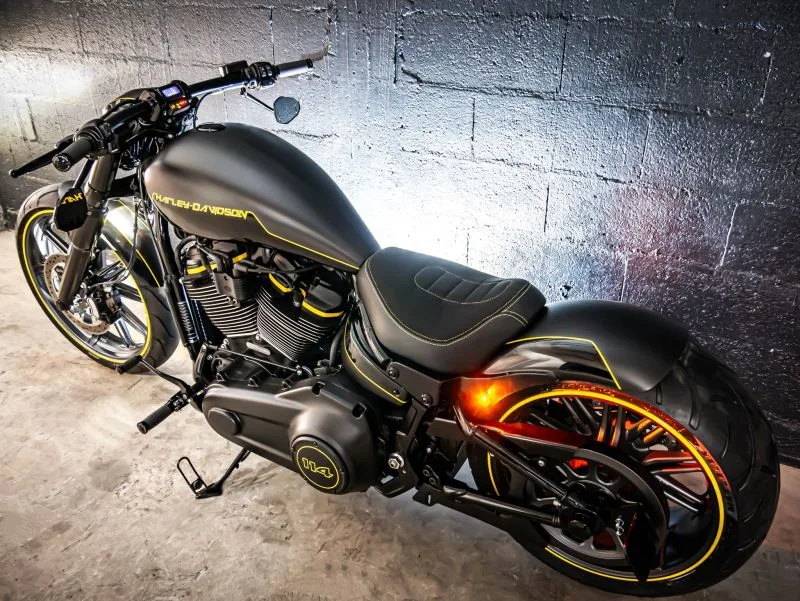 - Satin and gloss varnish is used on the body elements to enhance the highlights and colours of this showbike.