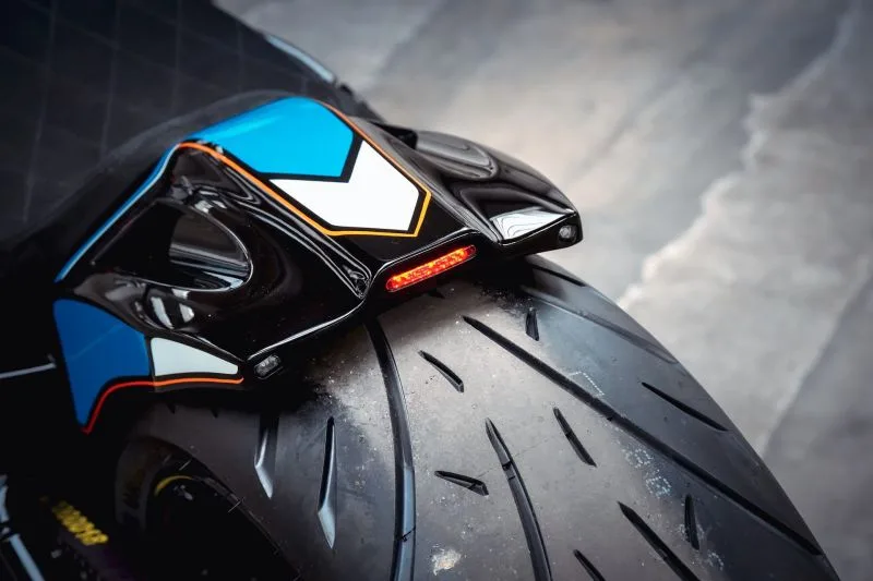 Thunderbike took inspiration from their Razorback model, known for its razor-sharp edges and the seamless line that runs across the tank, fenders, and spoiler from their GP Style series.