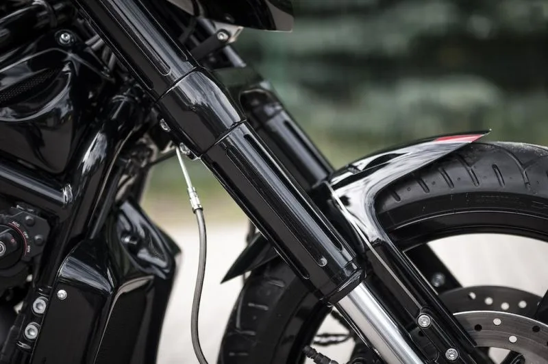 No expensive parts, almost all original: stock front and rear suspension, wheels, swingarms etc. It is enough to put a full body kit and some accessories and you will have the result like this. Of course, some work like powder coating and aerography makes things look more special and unique. Almost on all of our builds we use the same handlebar, grips, front fork covers, and lowering kits, as it always works to get that mean look of the V-Rod!