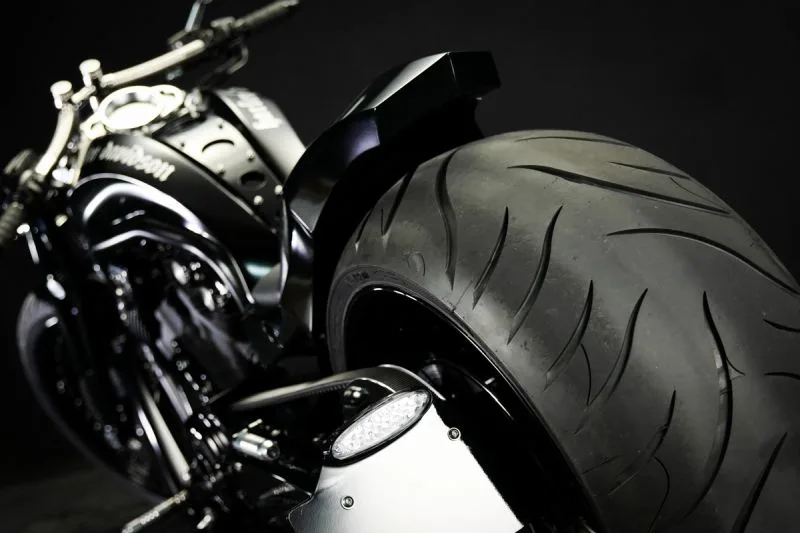 Starting with the wheels, the Harley Davidson custom Night Rod “Toros” by Bad Land features a ZAPPA 3.5×21″ front wheel and a ZAPPA 10.5×18″ rear wheel. These wheels not only enhance the aesthetics of the bike but also improve its performance on the road. The front tire is an AVON COBRA 120/70-21″ and the rear tire is an AVON COBRA 300/35-18″, both providing excellent grip and stability.