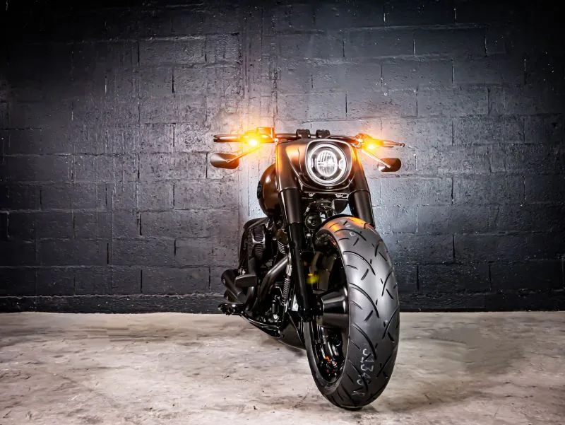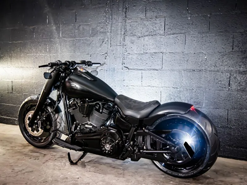 This black balayage brings the bike a sober and sporty side to this latest-generation fat boy.