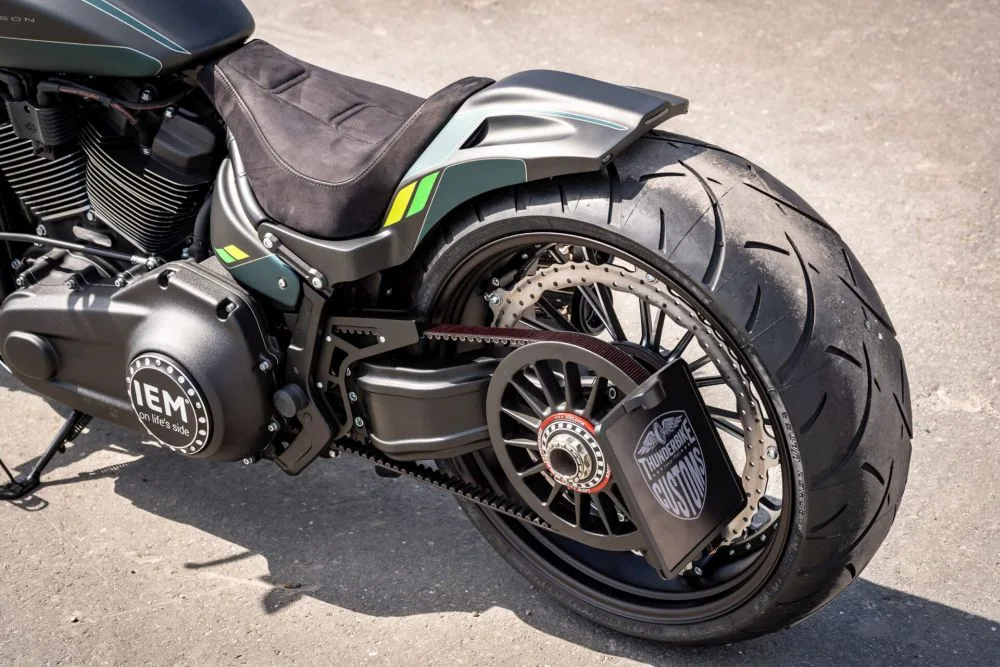 Some other parts from the Thunderbike production, such as the pre-mounted footrest system, grips and toppers, as well as the side license plate complete our concept.