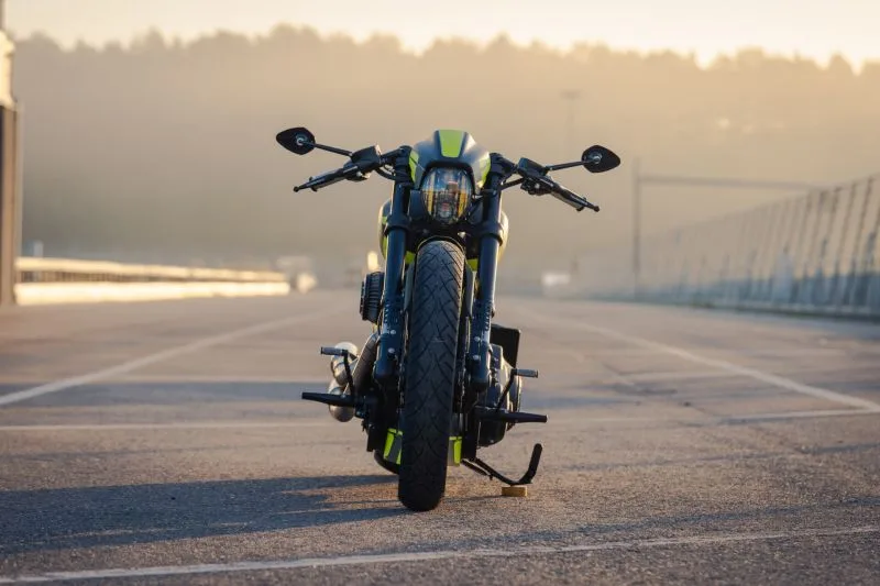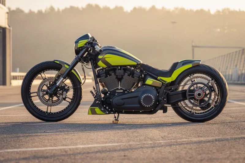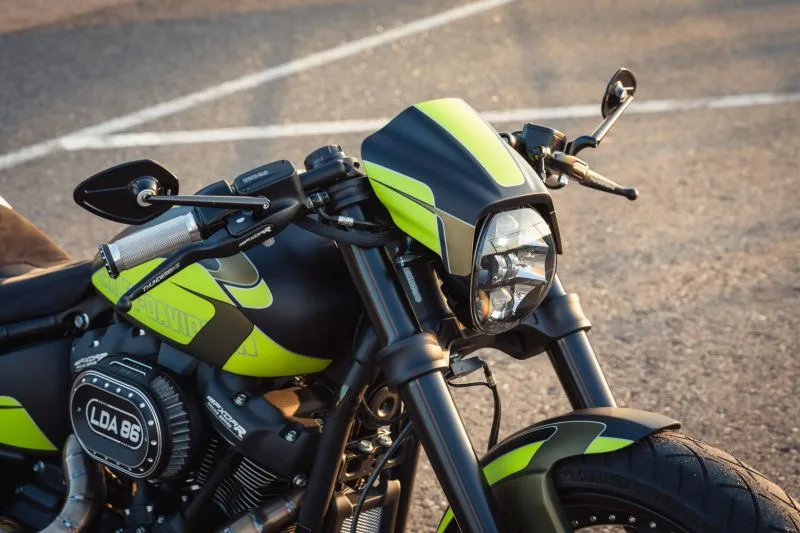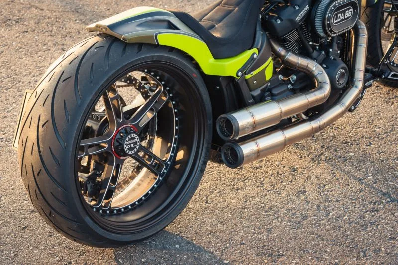 What makes this bike, however, are our matched components: Single-sided swingarm, big wheels, lowered front and rear, rear fender with lights, side license plate, nose spoiler and various black covers. And yes, of course we beefed up the powerful Milwaukee-Eight 114 engine with the torque kit (Screamin’ Eagle Stage II) and the big air cleaner and tuned it with DON Performance.