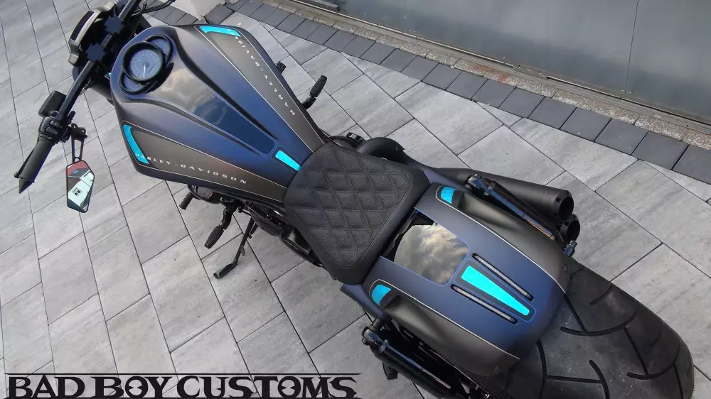 - Fenders: Both the rear and front fenders have been customized by Bad Boy Customs, ensuring that every angle of this Night Rod is a sight to behold.