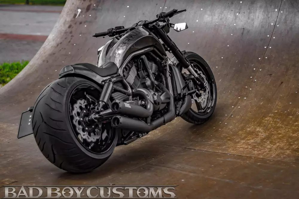 With its massive Avon Cobra 300 rear tire and flawless proportions, this Night Rod Carbon by Bad Boy Customs is built for those who want to stand out. It’s not just a motorcycle — it’s a statement of power, precision, and style.