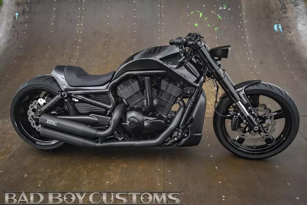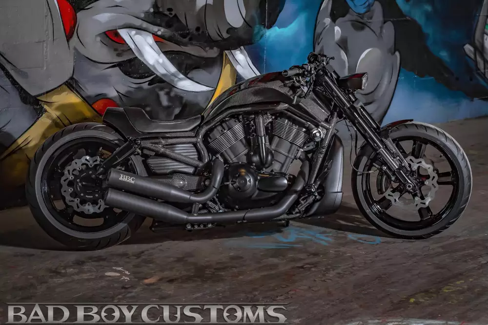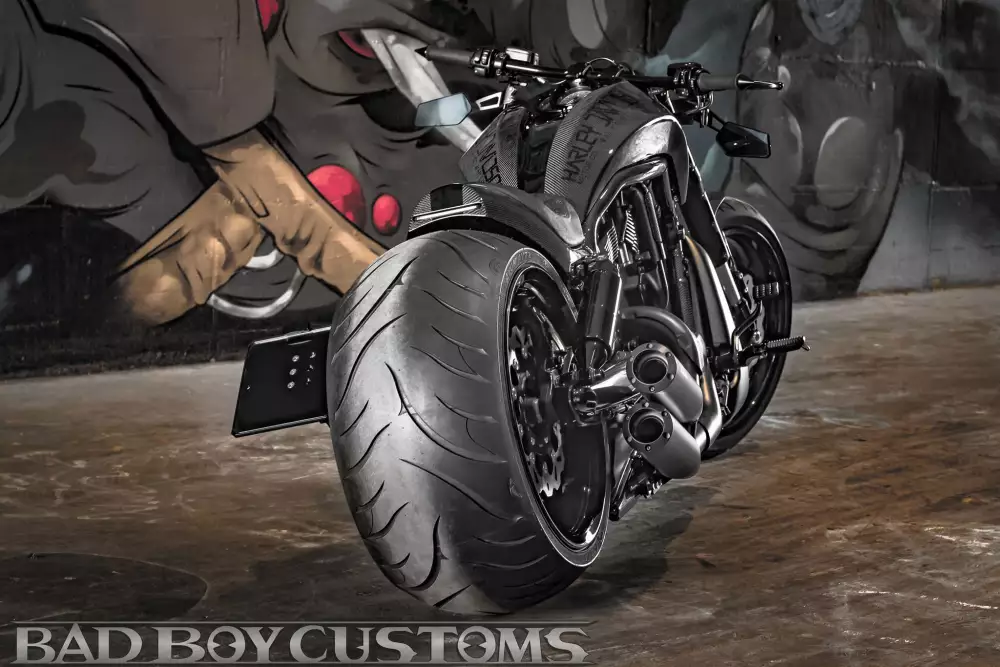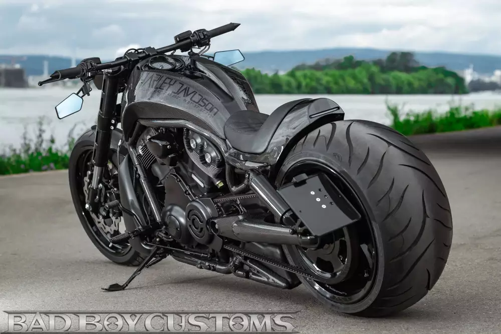 With its massive Avon Cobra 300 rear tire and flawless proportions, this Night Rod Carbon by Bad Boy Customs is built for those who want to stand out. It’s not just a motorcycle — it’s a statement of power, precision, and style.