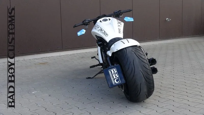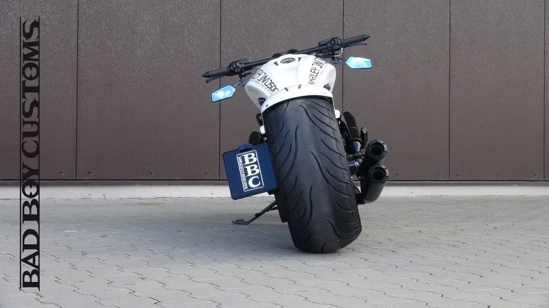 A number of custom BBC (Bad Boy Customs) components bring this beast to life. The rear fender, short front fender, airbox cover, fork sleeves, and both front and rear axle covers are all BBC parts, seamlessly integrated into the bike’s sleek lines. The 3-in-1 rear indicators are built into the fender, keeping the look minimal and modern.