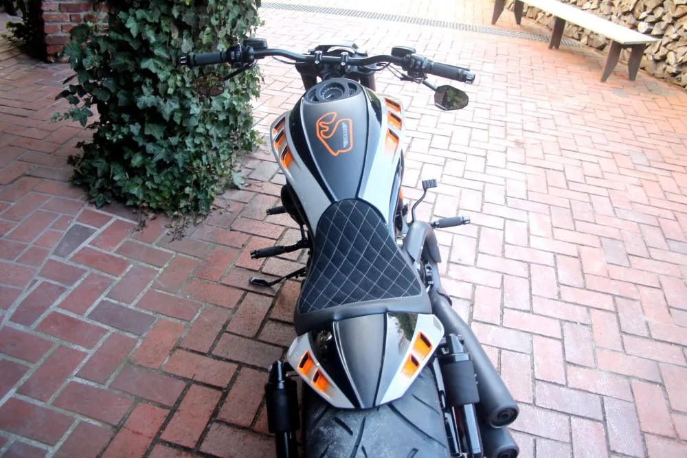 - Rear fender Ram Air with subsequently recessed LED taillights and LED turn signals, and hand-made air inlets, which were backed with mesh grids.
