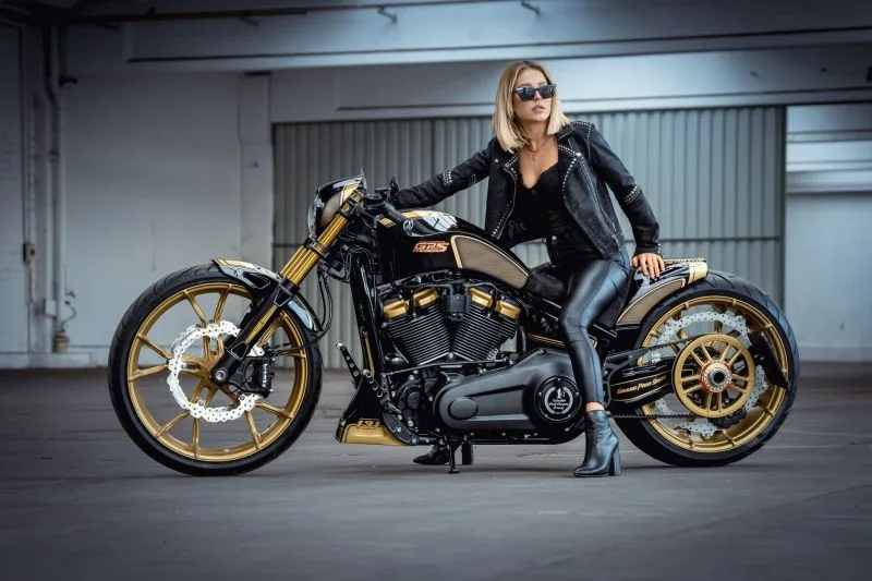 At the rear, we’ve treated the Softail Breakout to a newly developed shock absorber in the form of the Slamtail, which can be adjusted hydraulically in height at the touch of a button and has decisive advantages over an airride. In the fork we use a new damper system from Bitubo, with which compression and rebound can be perfectly adjusted.