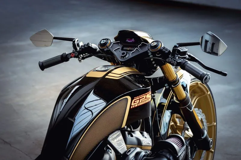 The high quality paint is a modern interpretation of the times of Lotus and John Player Special by Ingo Kruse Design. Le Mans is one of the most traditional race tracks, so it should be a traditional paint job. The color scheme documents the historic racing character and at the same time accentuates the sporty format of the bike.