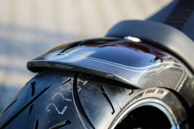 The most popular modification for us is the modification of the rear section, which is decorated by the complete Thunderbike package. Starting with our rear fender Steel in the 260/18″ version including rear light and turn signal, which changes the view on the rear tires already substantially. Such a rear modification brings of course also the relocation of the license plate holder, which also comes from our forge. The single seat 206/18″ was specially developed for this conversion and can be ordered online from us.