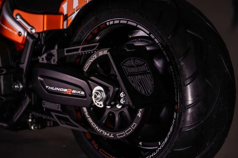 Of course, the side mount license plate bracket with Thunderbike Inside Plate is obligatory for such a conversion. In addition, there is a new front fender, chin fairing and well hidden turn signals, which also underline the sporty look of the project. The Harley-Davidson P&A catalogue also has a lot to offer.