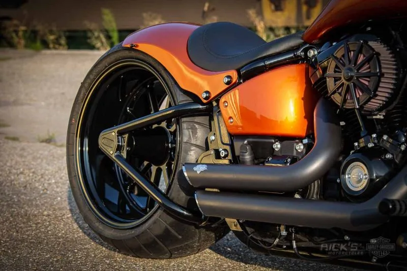 After a year of development with TÜV, Rick’s presented the first 300-wide Milwaukee-Eight Softail Slim at European Bike Week 2018, where it became a highlight.