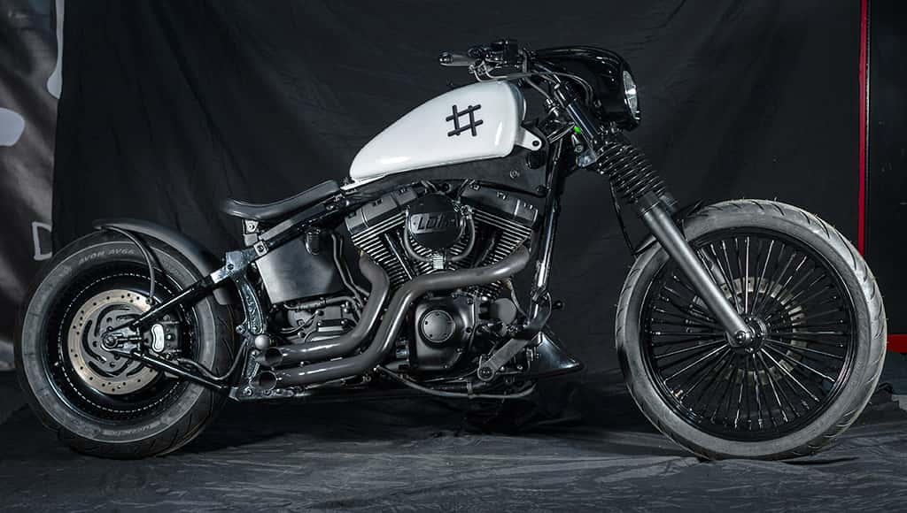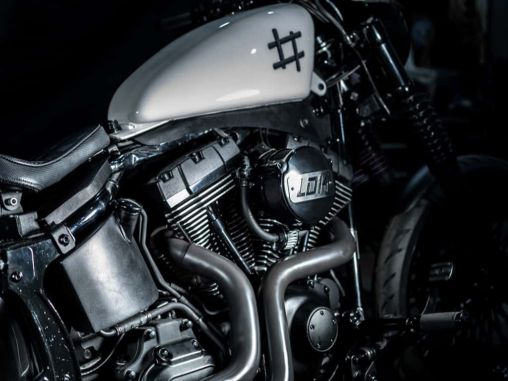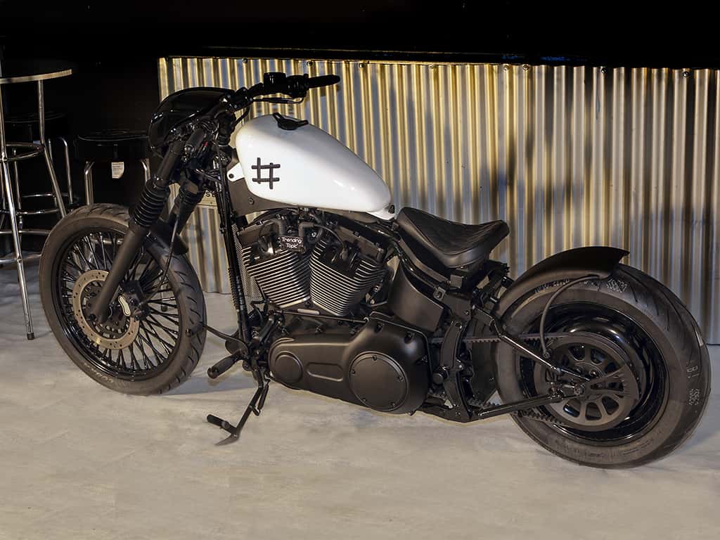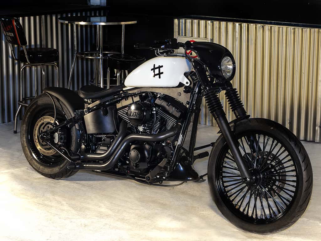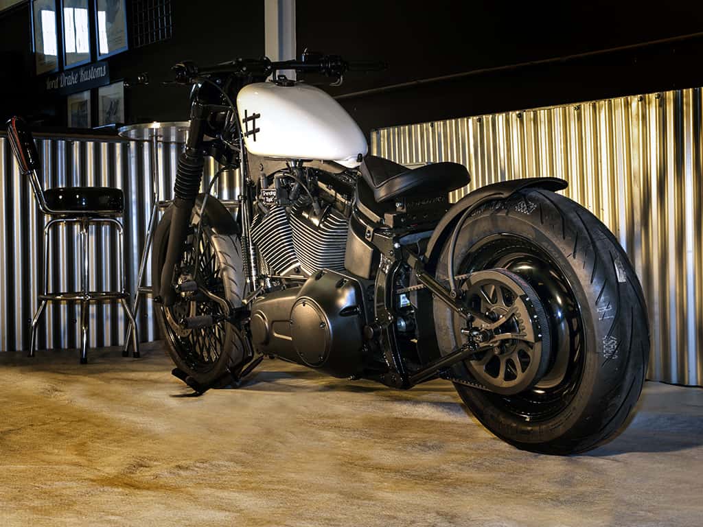 Many other details were added, such as the front wheel of big spokes for Harley Davidson or the digital motor speedometer mini motogadget. In addition, three elements that would break with the typical Bobber-look were incorporated in the front of the motorcycle: a Harley dome, a keel-spoiler and a front grille.