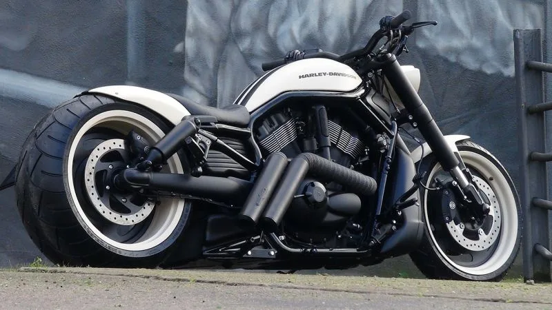 The Harley-Davidson V-Rod Airride “White Pearl 280” by Bad Boy Customs is a breathtaking example of custom craftsmanship, merging elegance and aggression in perfect harmony.
