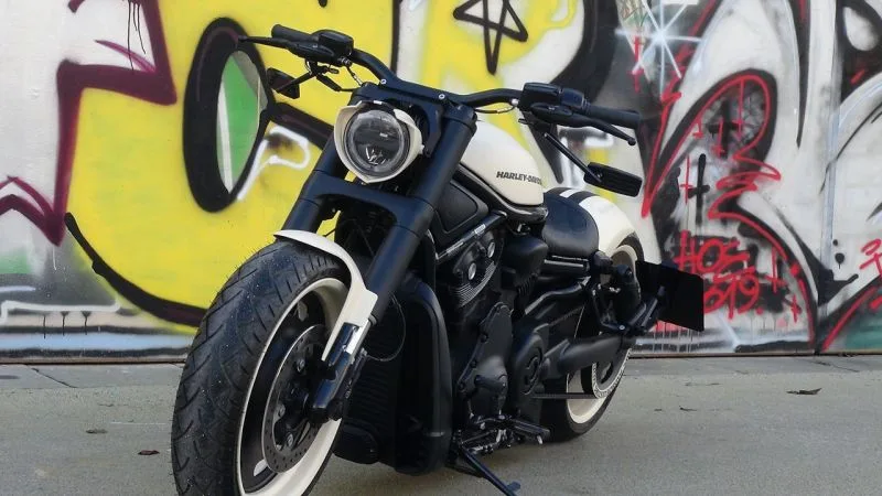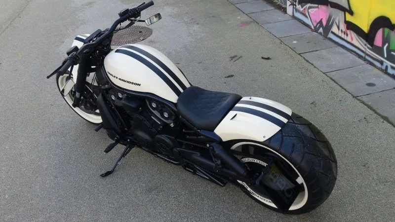 Its distinctive white-and-black color scheme emphasizes the muscular lines of the V-Rod, while every element has been meticulously designed to highlight both form and function.