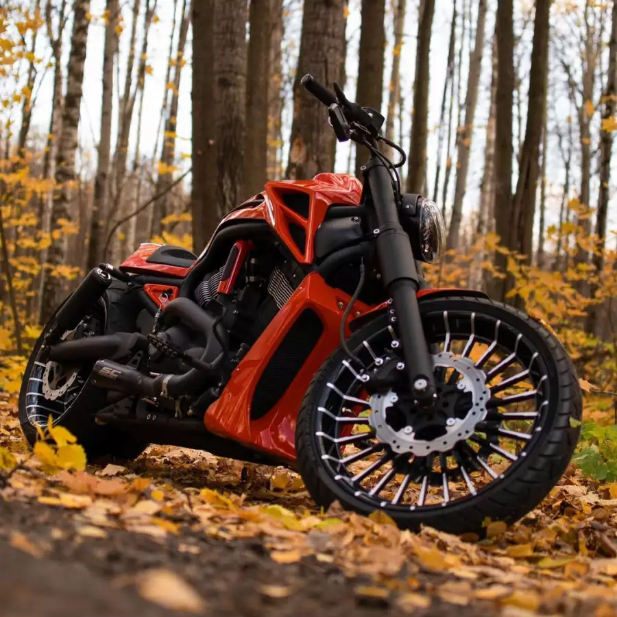 A masterpiece of power and design — this custom V-Rod takes the iconic Harley muscle bike to an entirely new level.