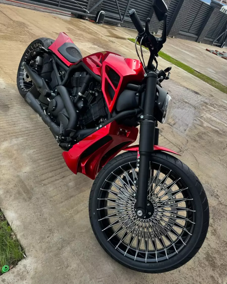 A masterpiece of power and design — this custom V-Rod takes the iconic Harley muscle bike to an entirely new level.