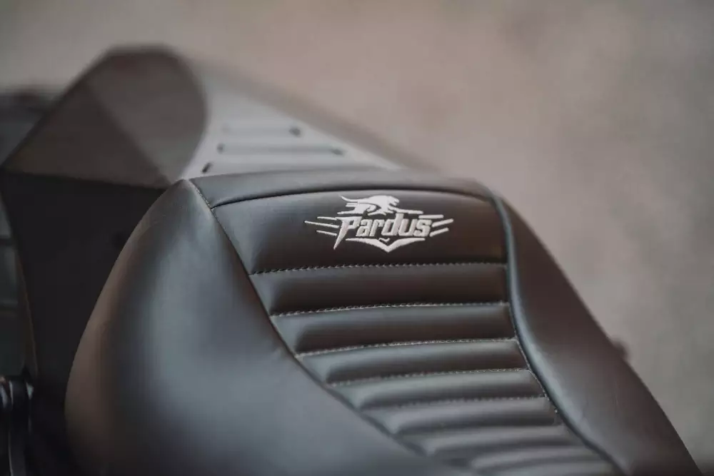 Wheel dimensions play a crucial role in the commanding look of PARDUS. The front wheel measures 18 inches with a 180 mm tire, offering confident handling and visual balance, while the massive 18-inch rear wheel with a 360 mm tire delivers an unmistakable muscle-bike presence. This wide rear setup reinforces traction, stability and the bike’s predatory stance, echoing its inspiration.