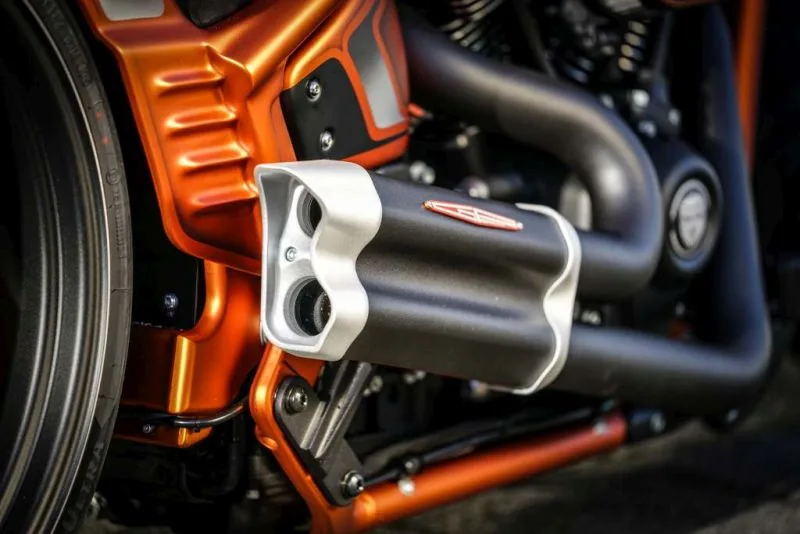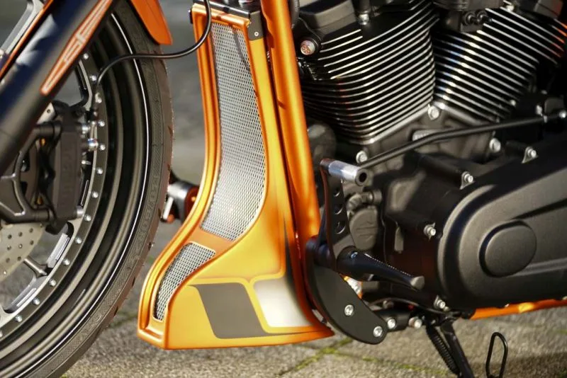 Handling is optimized through the Thunderbike Air Ride Suspension Kit, which provides height adjustability and comfort without compromising on style. Steering dynamics are sharpened with the Grand Prix bicolor triple tree kit and matching clip-on handlebars, delivering a sporty, café racer feel.