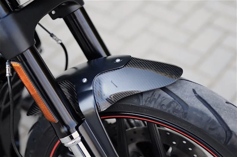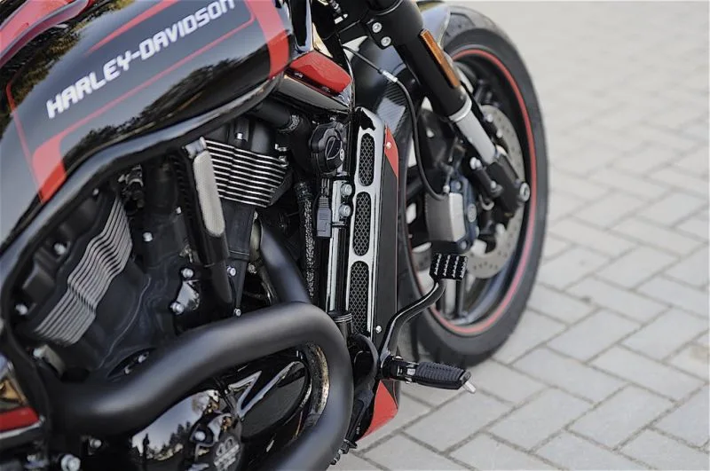 Most of the parts we use on our builds are manufactured by us, so shop this look below without spending tons of money to get the same aggressive look! Almost on all of our builds we use the same handlebar, grips, front fork covers, and lowering kits, as it always works to get that mean look of the V-Rod!