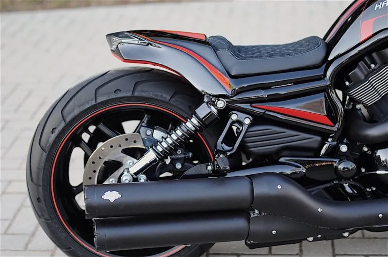 Our signature V-Rod builds have two things in common – stock rear fenders are always chopped-out and metal parts almost always blacked-out! We never found stock V-Rods good looking, so we got a formula that always makes the V-Rod stand-out. No expensive parts – almost all original. Stock front and rear suspension, wheels, swingarms, etc. It’s enough to put a full body kit and some accessories to have the result like this.