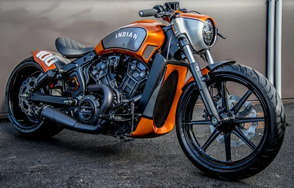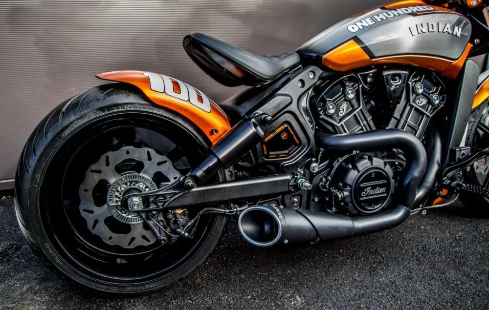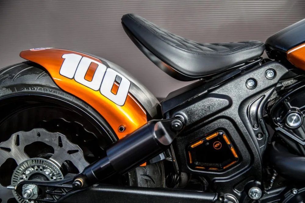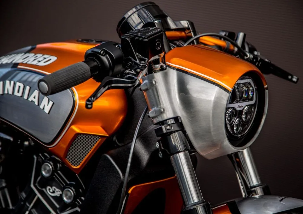 The Sprint Spirit is clear in the Scout Bobber ‘Hundred’ which takes its inspiration straight from American drag strips where the smell of burnt rubber and gasoline reigns. Putting all their passion and know-how into the transformation of the Scout, the team at Indian Motorcycle Metz put in long days, working late into the evening.