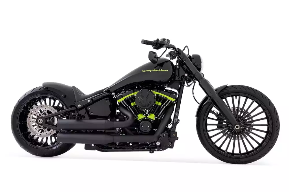 IRON MESH is a striking reinterpretation of the Harley-Davidson Breakout 117, meticulously modified by Bündnerbike.