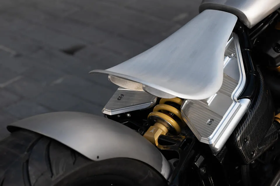 Other accessories from trusted brands have also been implemented to further enhance the performance and style of the bike. A Motogadget instrument housing and contourded headlamp bracket ensure that the rider has clear visibility and control. Rick’s Single Sided Swingarm provides stability and a smoother ride.