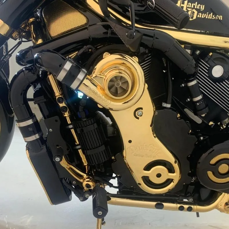 Under the hood lies the heart of this beast—a Rotrex Supercharged System. It’s not just about performance; it’s a visual delight with abundant gold detailing, elevating the bike’s aesthetics to a whole new level.