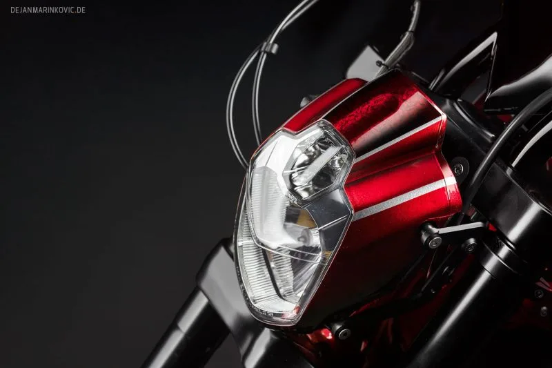 The modified headlights add to the aggressive and refined look of the motorcycle, with a sleek and modern appearance that blends in seamlessly with the rest of the bike.