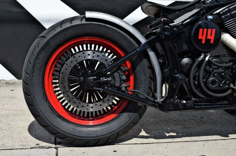 These rims for custom motorcycles are from the North American brand RC Components and the respective brake discs and pulley matching the rims have also been installed.