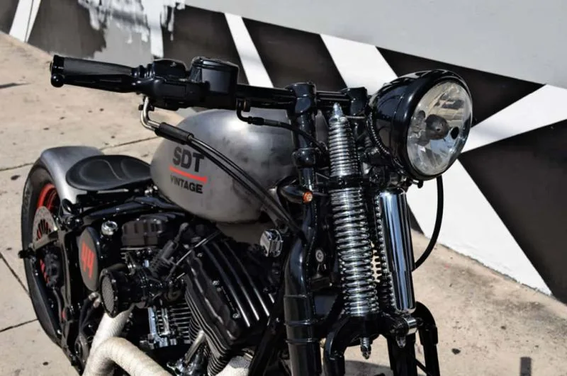 This custom Harley was commissioned by a regular Lord Drake Kustoms client, SDT Designs, who collaborated closely with the builder to create this powerful old-school Softail. The initials “SDT” come from the name of the bike’s owner. From the beginning it was clear that cheap aftermarket springer forks were not an option. The goal was something radical, clean and authentic, so the project started with a Harley-Davidson Softail as the base, later transformed into a Softail Springer Classic.