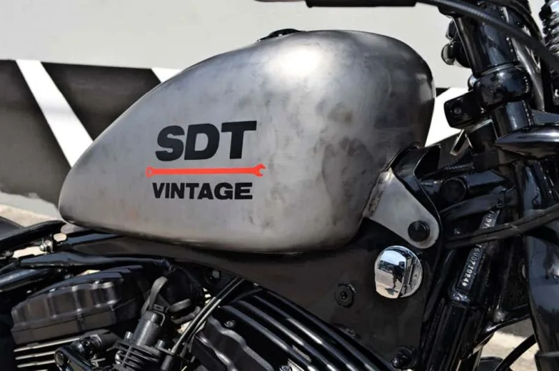• Custom fuel tank, redesigned with cleaner and more aggressive lines.