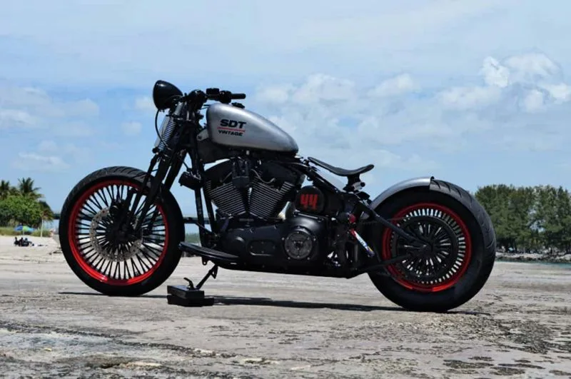 Is a Harley Davidson customised by Lord Drake Kustoms at their motorbike workshop located in Malaga, Spain. Initially, the bike started as a stock Harley Davidson Softail Deluxe, but underwent radical customisation and transformation.