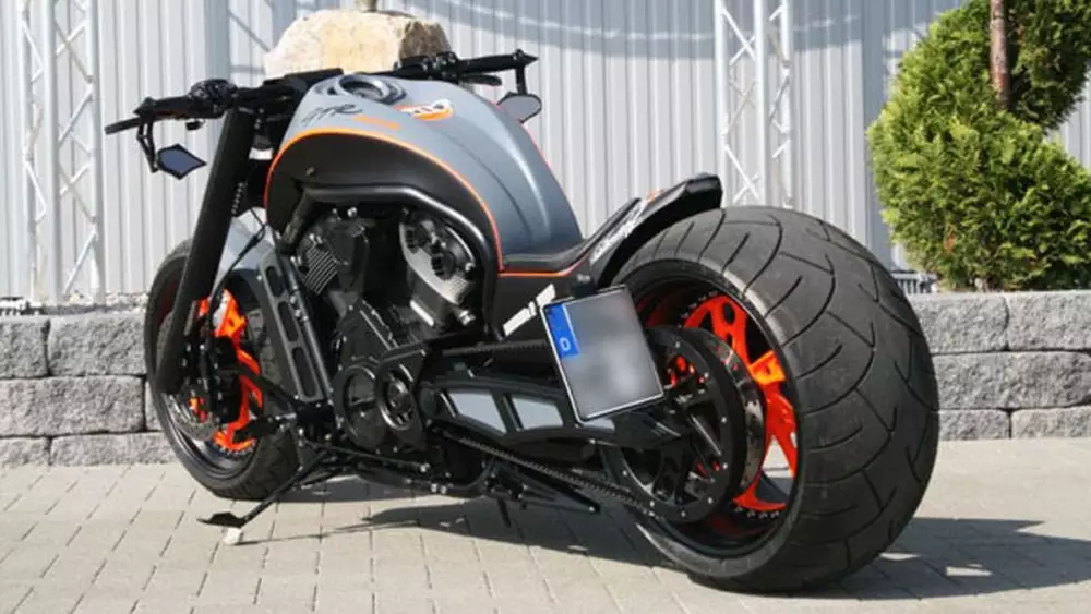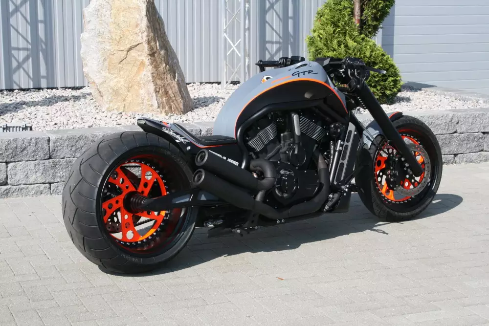 In conclusion, the Harley-Davidson V-Rod ‘GT Edition’ by No Limit Custom is a true masterpiece of customization and craftsmanship. With its striking gray and blue color scheme, custom body kit, performance-enhancing exhaust system, and massive rear wheel, this bike is a head-turner on the road and a joy to ride. If you’re looking for a Harley-Davidson that stands out from the crowd and offers an exhilarating riding experience, the V-Rod ‘GT Edition’ is the bike for you.