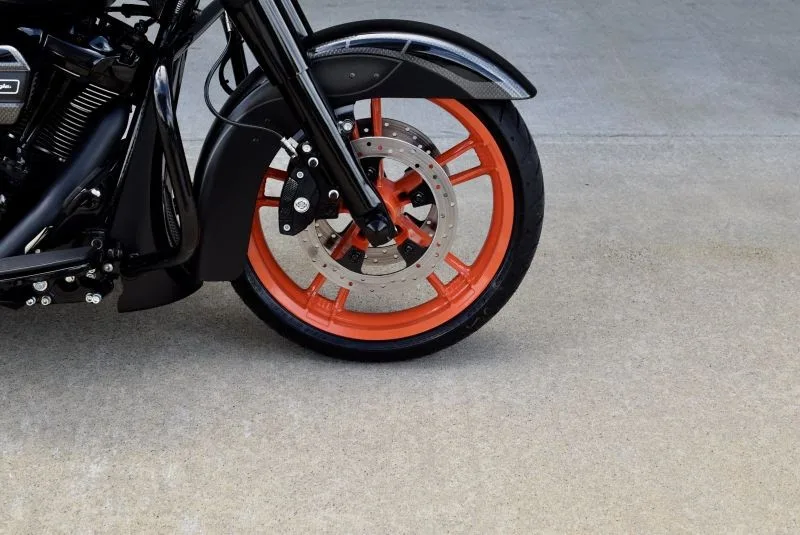 The first thing that catches the eye is the custom black solid wheels ( BOX39 design). The Metzeler Marathon Ultra tires provide exceptional grip and handling. The bike also features an awesome rear fender that covers the entire rear tire, giving it a sleek and streamlined look.