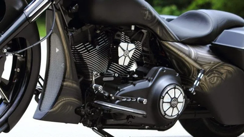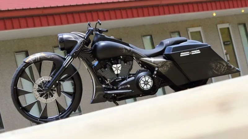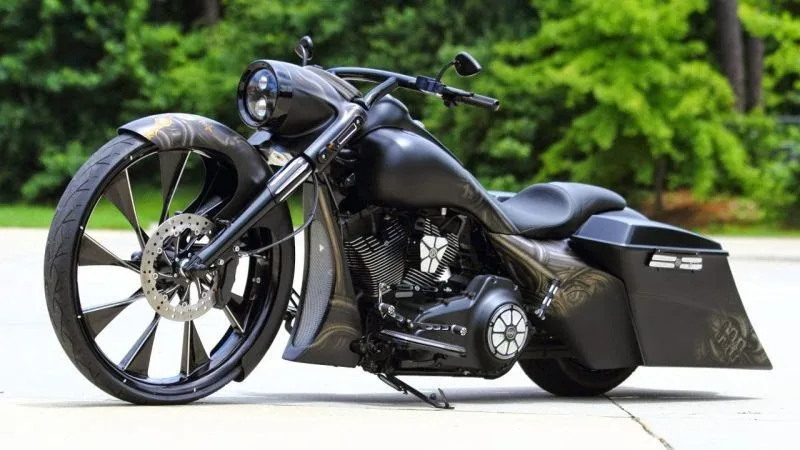 What truly sets The Fat King’s Road King Special apart is its commitment to the dark side. This bike boasts a complete absence of chrome, with every inch of the bike’s exterior finished in sleek black. This aesthetic choice is a bold statement, giving the bike a stealthy and aggressive look that’s sure to turn heads wherever it goes.