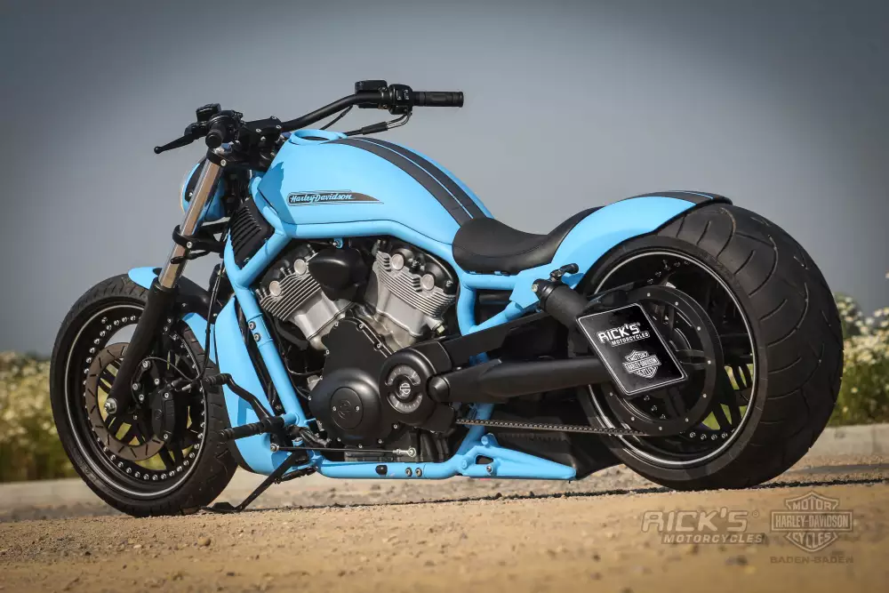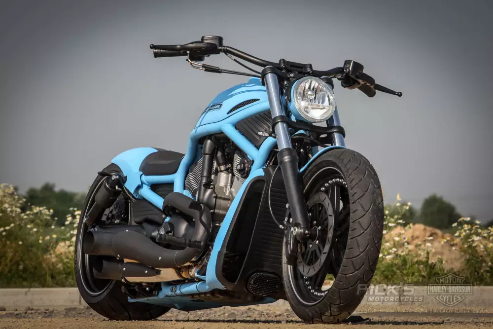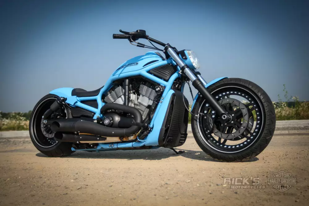 “Forget Blue” isn’t just a color statement – it’s a bold, mechanical sculpture on two wheels, pushing the limits of what a Harley-Davidson V-Rod can become.