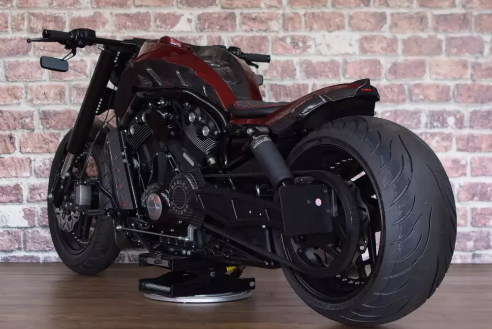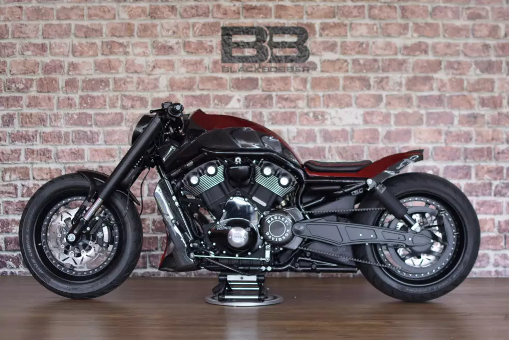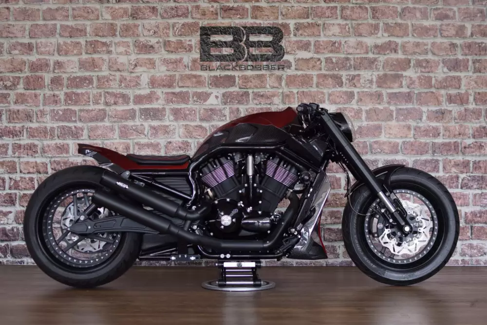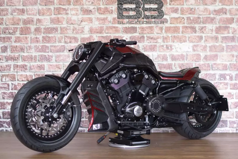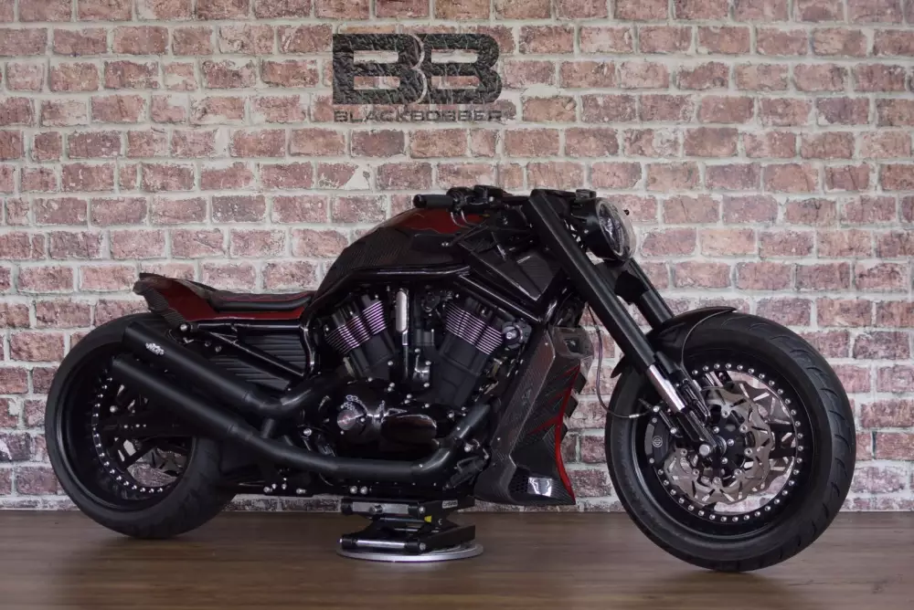 This custom Harley-Davidson V-Rod by Black Bobber is a perfect example of how a stock bike can be transformed into a dark, aggressive, and futuristic machine. With its wide tires, carbon fiber bodywork, and stealth black finish, this build represents the essence of modern custom motorcycle culture.