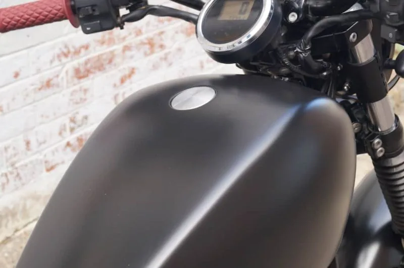 As well as some serious cosmetic mods, this blacked out tarmac-tearer is also fitted with a TBR air filter & full exhaust system, as well as a Dynojet Power Commander – she flies, and sounds like an absolute beast. Check out the vid below to hear her growl..